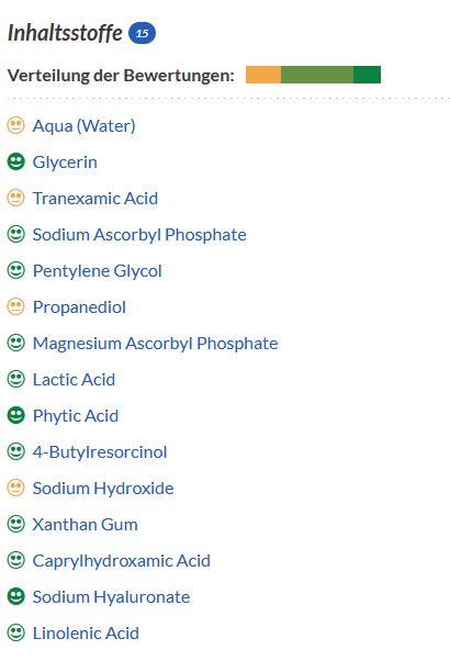 • Vitamin C (stabilisiert) & Tranexamsäure: Melanin regulierend