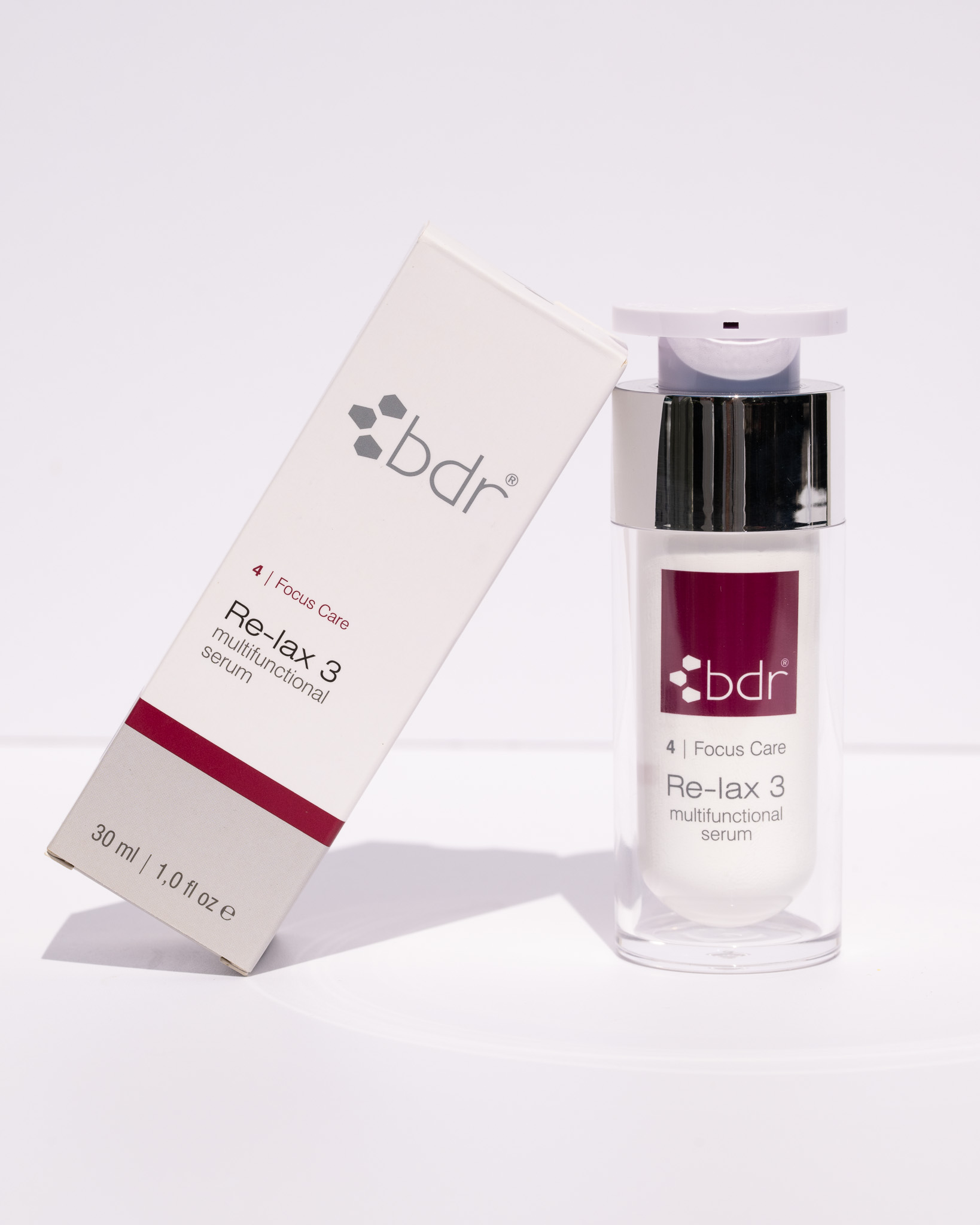 Mit Schritt 4 “Fokus Care” legen wir den Fokus auf zielgerichtete Spezialpflege. Denn besondere Hautbedürfnisse bedürfen besonderer Pflege. Das bdr Medical Beauty Concept hat gleich zwei Problemlöser dafür am Start – Re-lax 3 und Re-fine. Diese beiden Seren lassen sich für einen ultimativen Effekt sehr gut kombinieren: morgens Re-fine für ein ebenmäßiges, feines Hautbild und Schutz, Re-lax 3 abends für eine intensive Reparatur und weitere Glättung in der Nacht! Ergänzt wird die „Focus Care“ durch die bdr Masken.